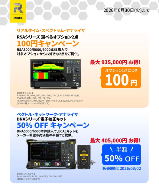 【RIGOL】RSA/DNAシリーズ お得な2つの特別キャンペーン!